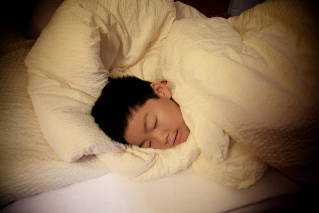 Day 6: The boy loves comforters. Looks like he's sleeping in the clouds.